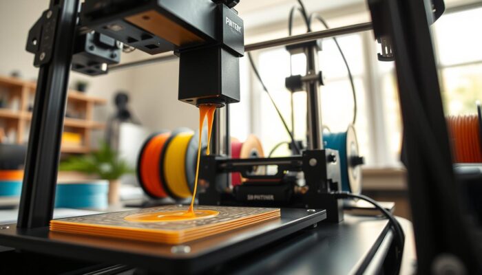 Na prática, a impressora pode usar filamento plástico aquecido ou resina líquida solidificada por laser. A peça cresce de baixo para cima, camada a camada.